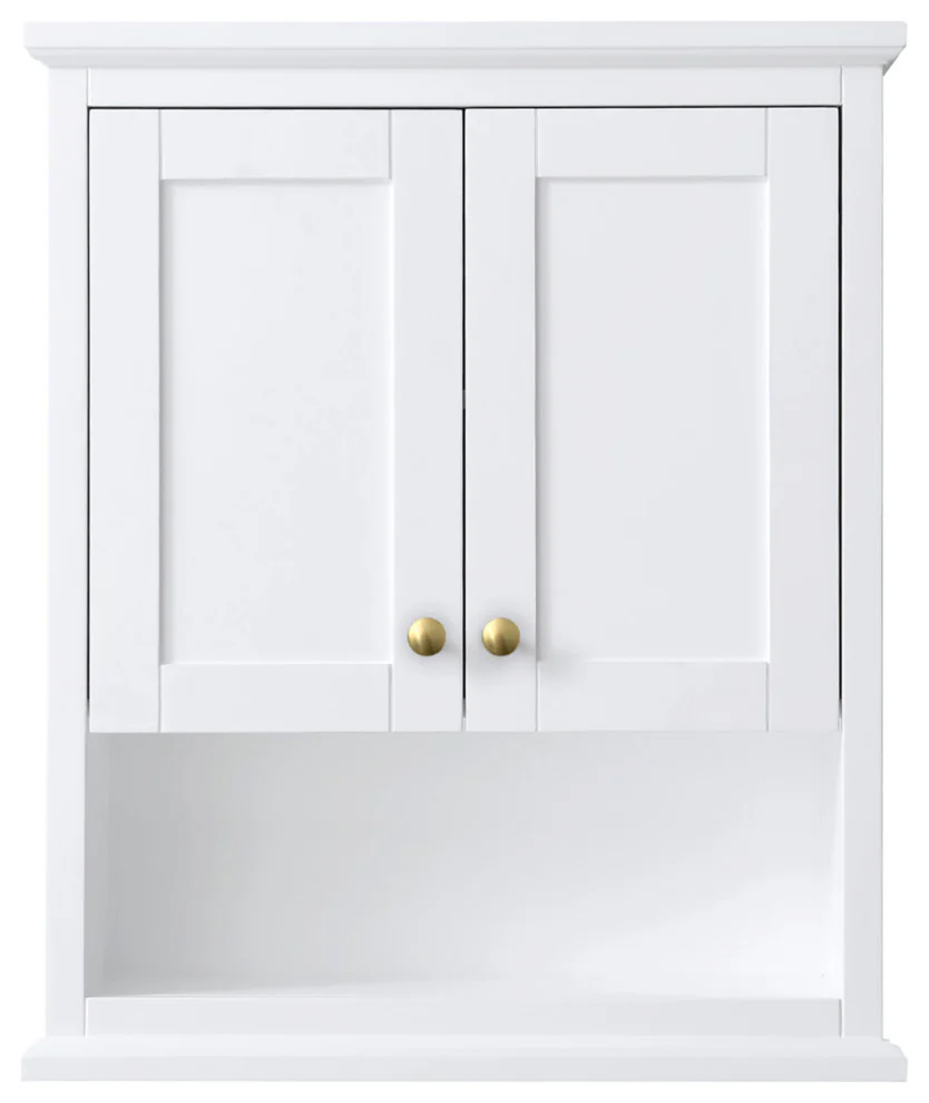 Bridging the gap between American Contemporary and European Classic, the Avery wall cabinets are a welcome addition to any bathroom. Beautiful, practical and designed for a lifetime of service, the Avery series by Wyndham Collection will add that touch of perfection to your bathroom remodel. Truly a centerpiece worthy of any home. Wyndham Collection WCV2323WC Features: Constructed of environmentally friendly, high grade solid wood, plywood, and MDF, engineered to prevent warping and last a lifetime 12-stage wood preparation, sanding, painting, and finishing process Highly water-resistant low VOC sealed finish Beautiful transitional styling that complements any bathroom Modern wall mount design Minimal assembly required Concealed soft-close door hinges Metal exterior hardware included Three storage levels and two soft-close doors 2 year limited warranty Wyndham Collection WCV2323WC Specifications: Height: 30" (top to bottom) Width: 25" (left to right) Depth: 9" (front to back) Number of Doors: 2 Number of Shelves: 2